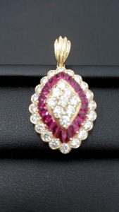 ダイヤモンドとルビーが豪華にあしらわれたとても華やかなデザインで、大変高級感が伝わるお品です。