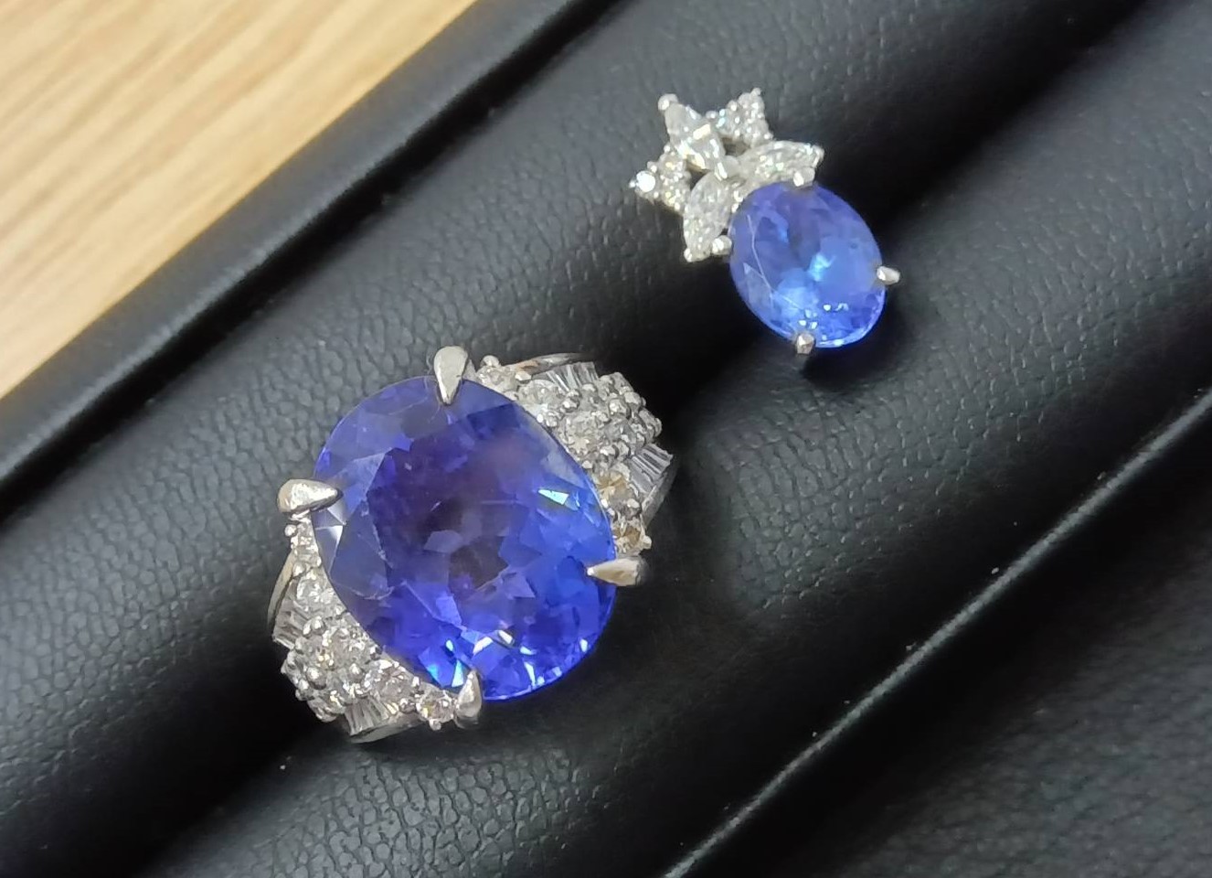 お品物はプラチナ(Pt900)のリングにタンザナイト9.56Ct、MD1.0Ct、トップもプラチナ(Pt900)にタンザナイト2.07CtとMD0.26が配置されたどれも存在感の有るリングとトップでした。