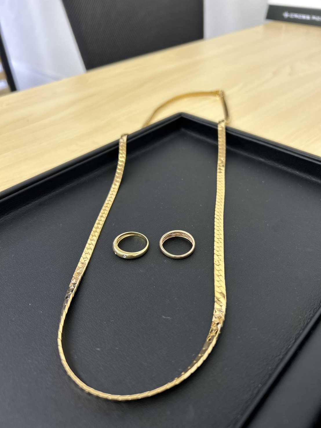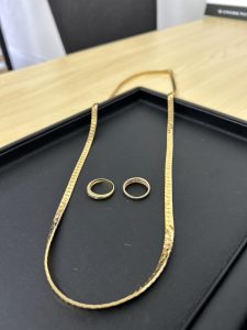 さて今回はK18のリングとネックレスをお買取りさせていただきました。
