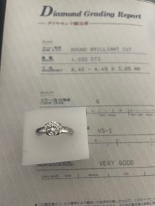 1ct越えの大変キレイなダイヤでしたので、高額査定にてお買取させていただきました!