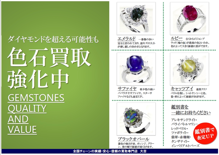 買取専門店 大吉ウエステ垂水店では「色石買取」を強化しております。
