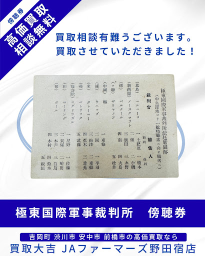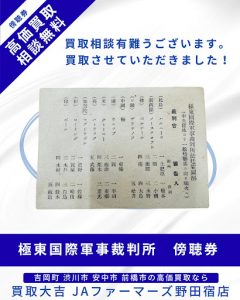 大変希少な【極東国際軍事裁判所 傍聴券】をお買取りさせていただきました! | JAファーマーズ野田宿店