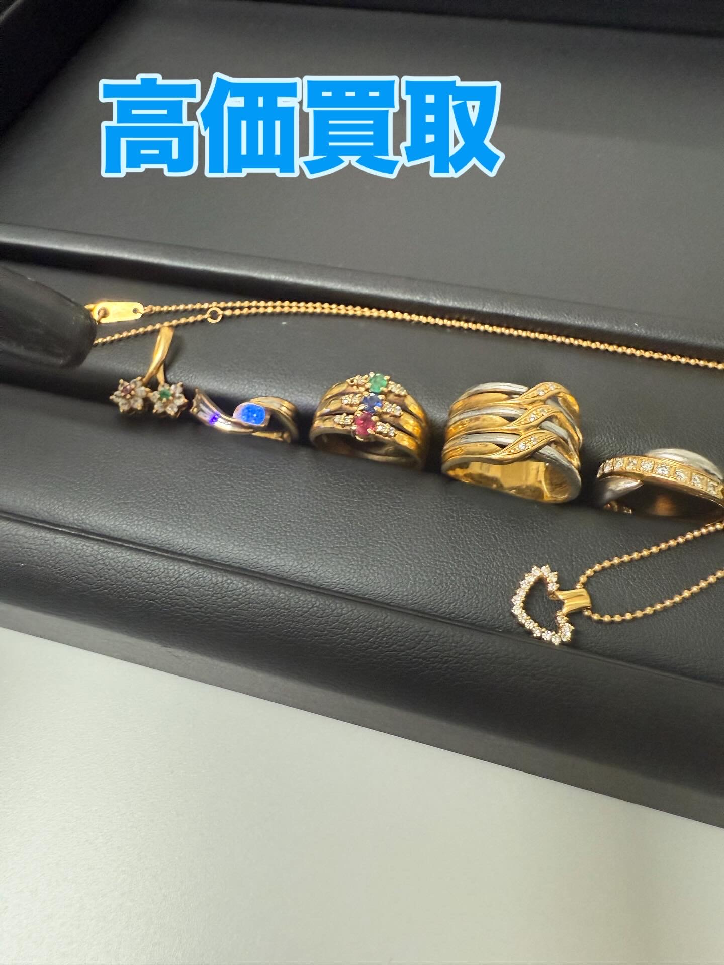 本日は、ゴールドリングや宝石付きジュエリーをお持ち込みいただきました。