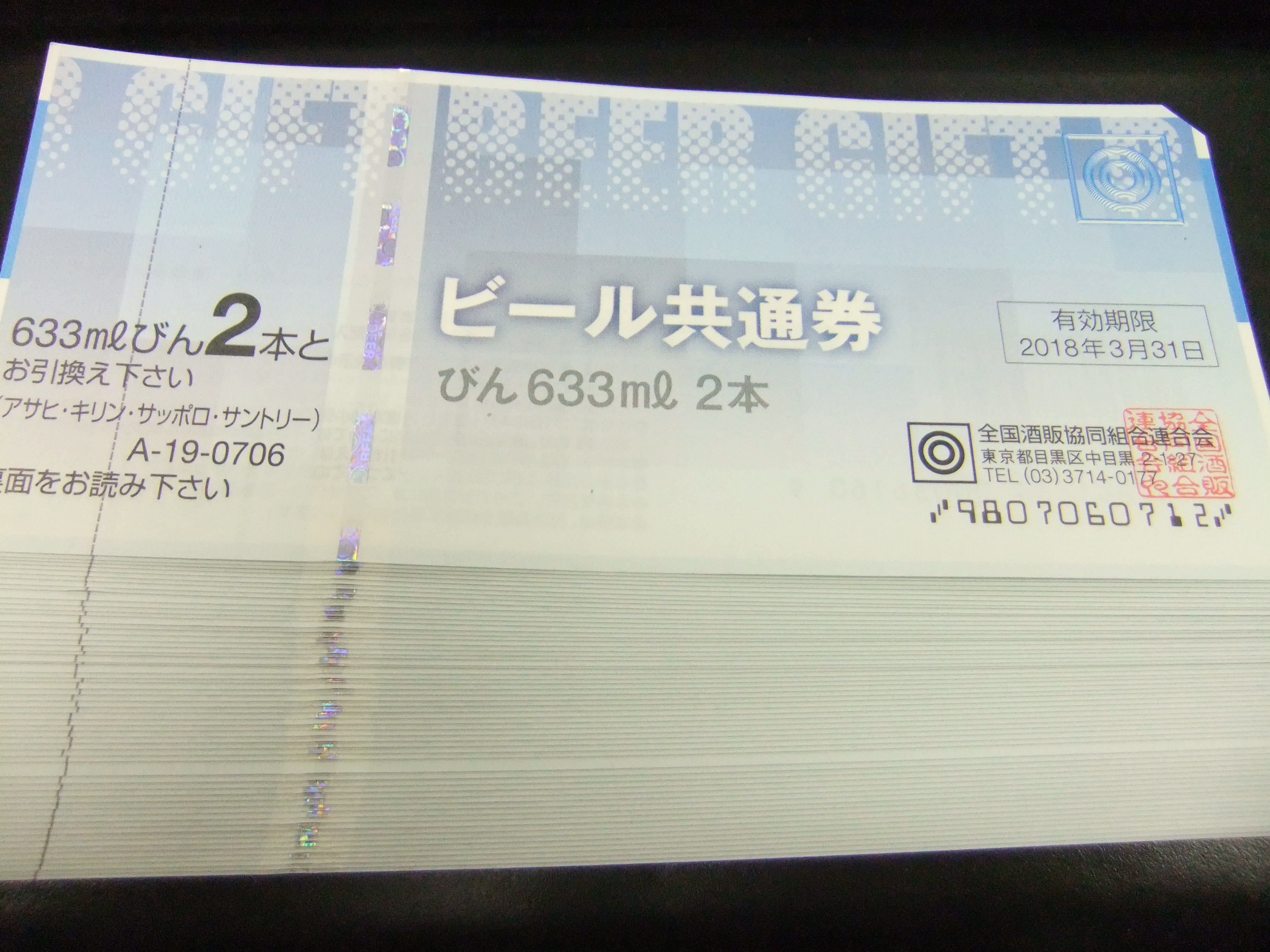 ビール券は色々な額面がありますので、売られる時にご確認下さい。