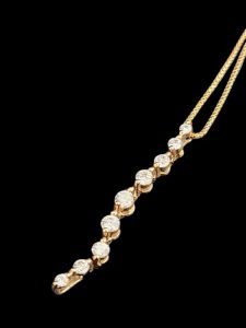 上品なボックスチェーンに、ダイヤモンドが連なったペンダントが付いたデザイン。