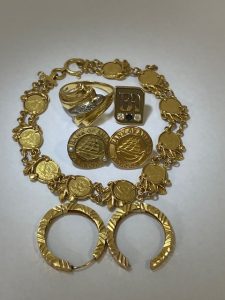 今回は金のブレスレット・リング・ピアス