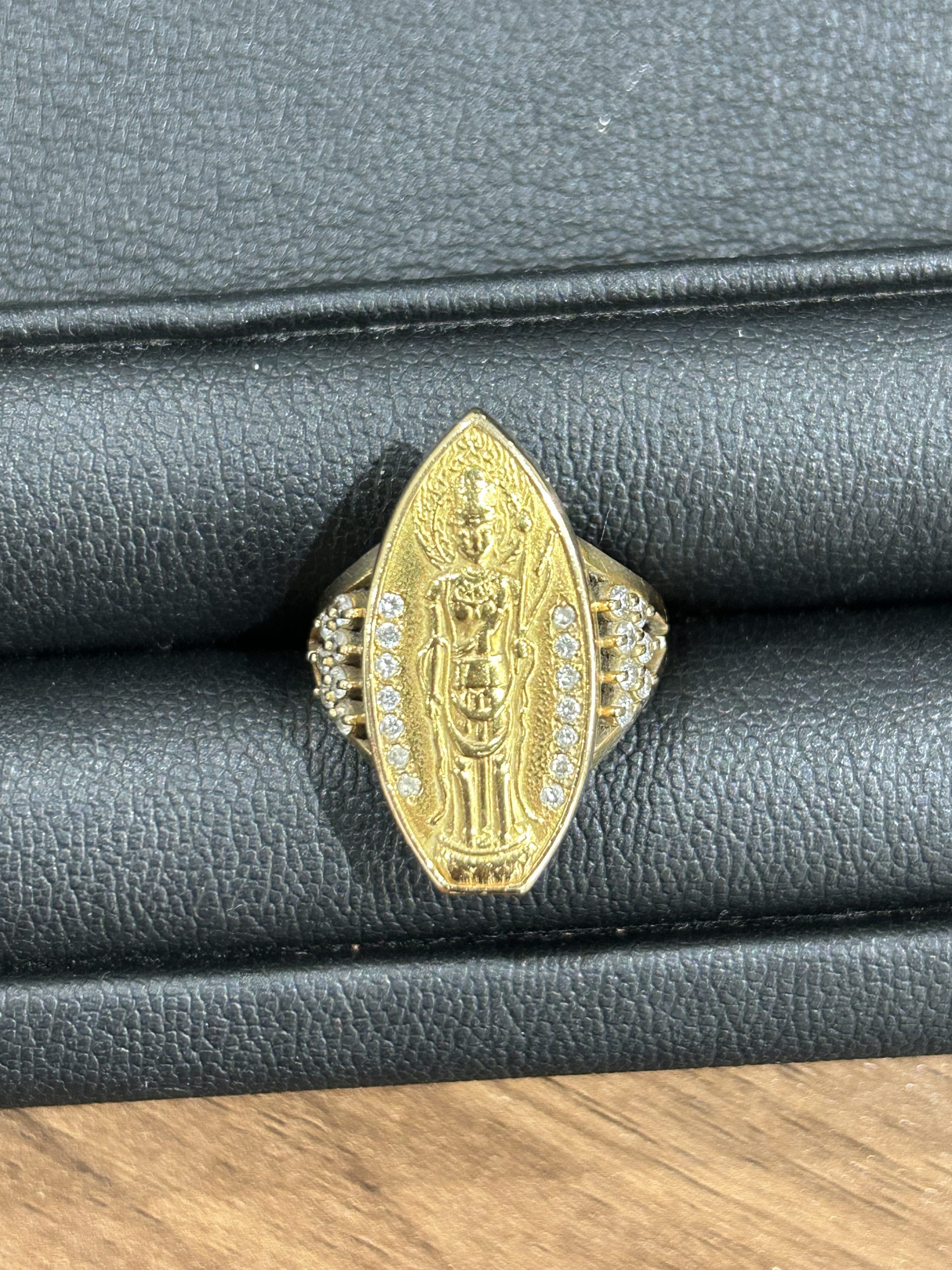 仏様のデザインに両脇にダイヤモンドが施された大切な指輪をお買い取りさせて頂きました。