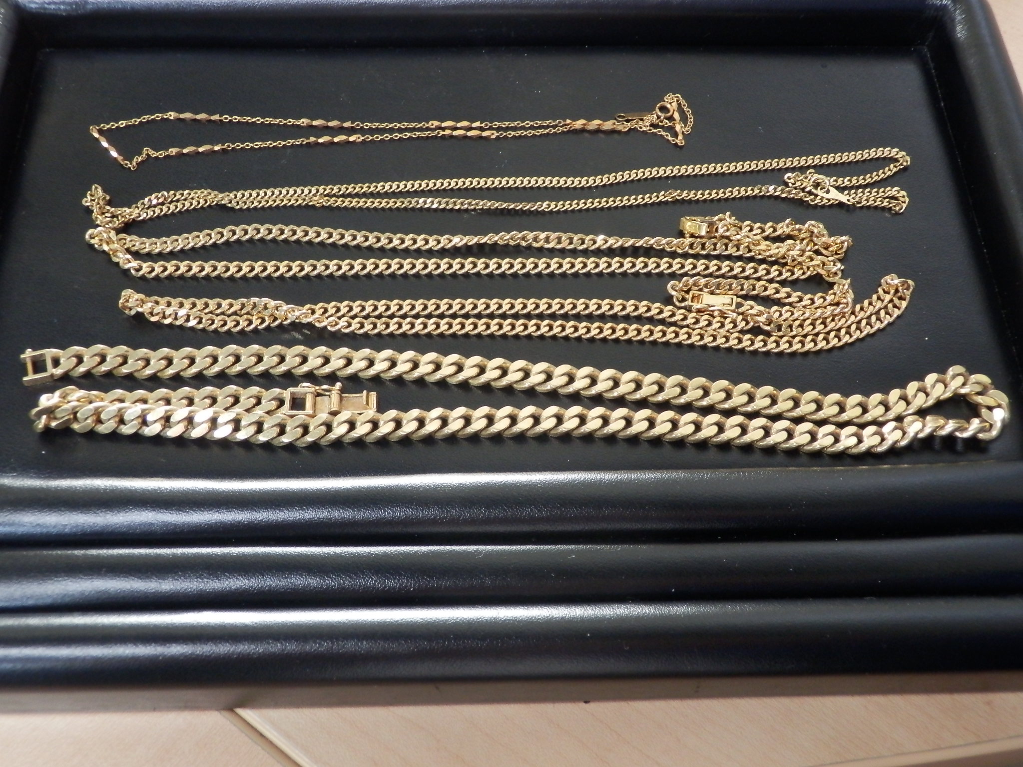 昨日、お買取させていただいた金のネックレス5本。