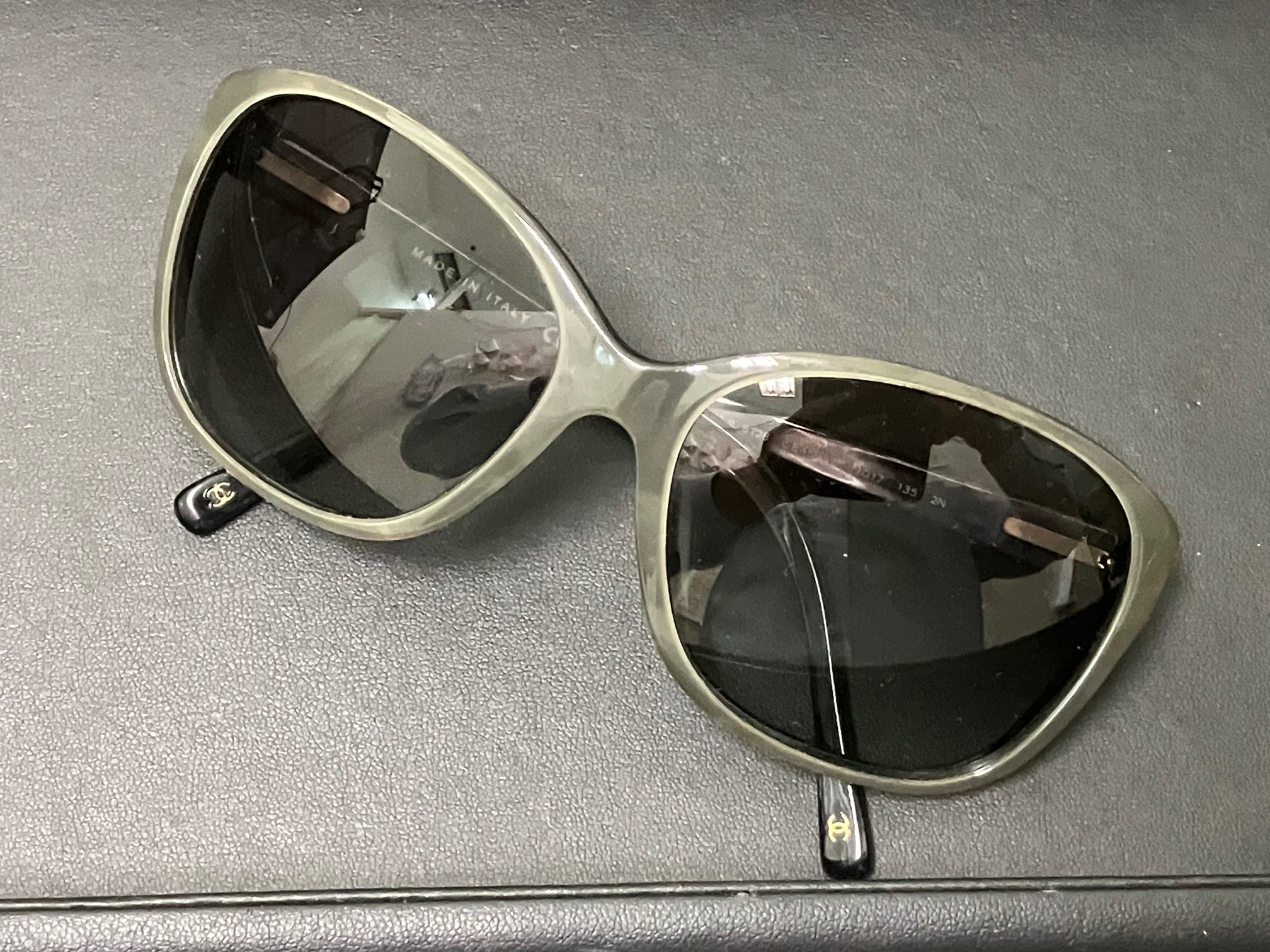 CHANEL(シャネル)のココマークのついたセルフレームのサングラスです。