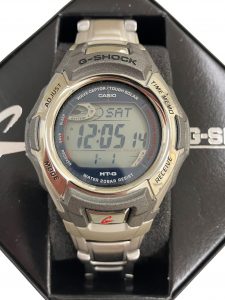 樹脂パーツと金属のメタルテイストMT-Gのラインナップに、電波時計、タフソーラーの機能を持つ「The G」として登場したモデルです。アンテナ部が小型化されスマートなデザインとなり20気圧防水、耐衝撃構造、電波受信機能、低電力化+大容量ソーラー充電システムの組み合わせ機能等充実した性能があり人気のシリーズです。今回の状態・中古相場等を考慮して査定額を提示させて頂きました。