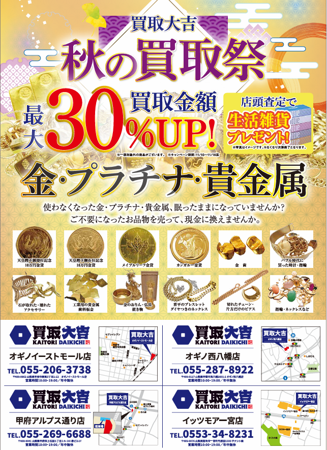 秋の買取祭!開催!! | 甲府アルプス通り店