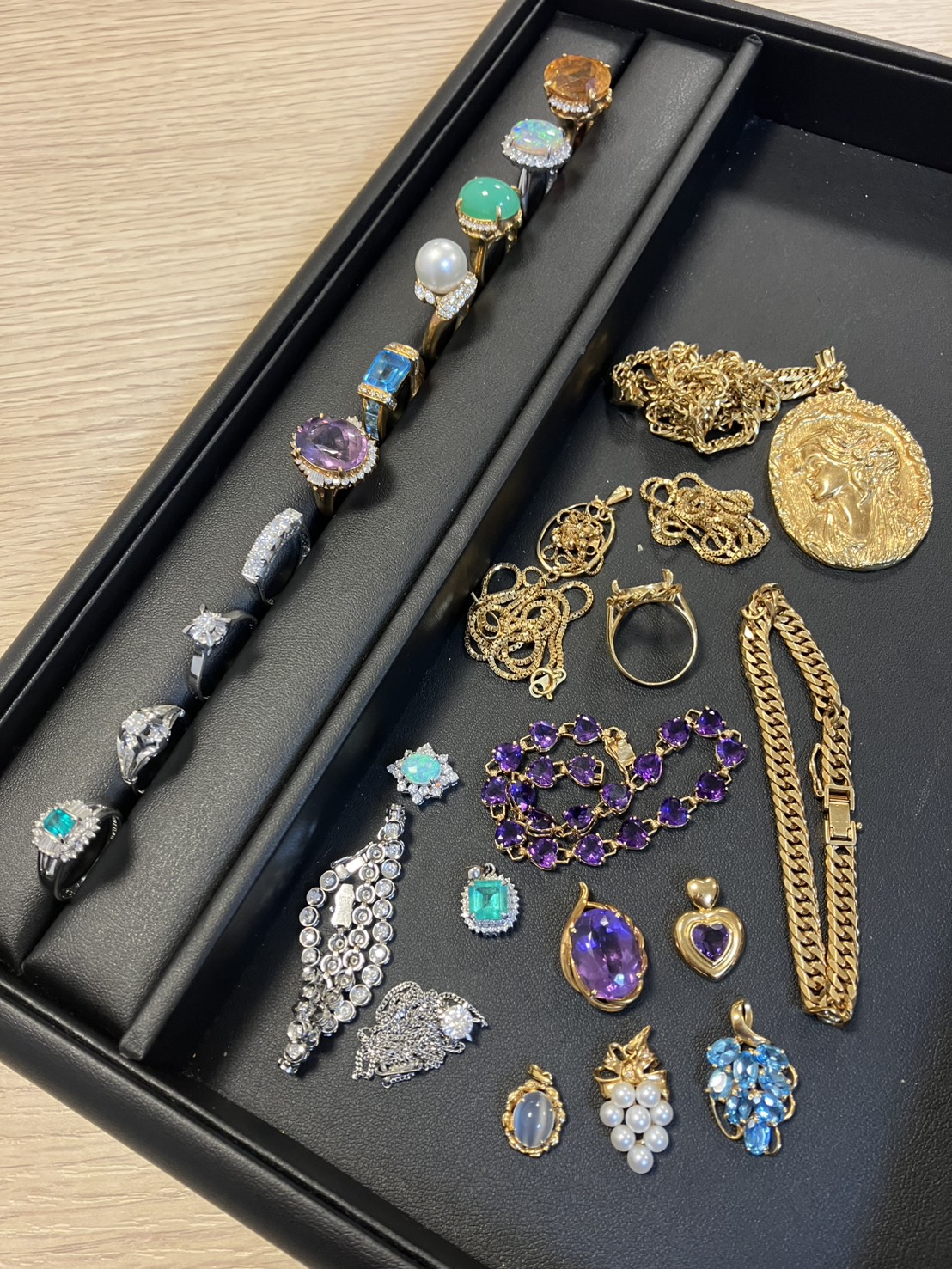 切れてしまっている、曲がってしまっている、石が取れているなどの貴金属製品のお品物も