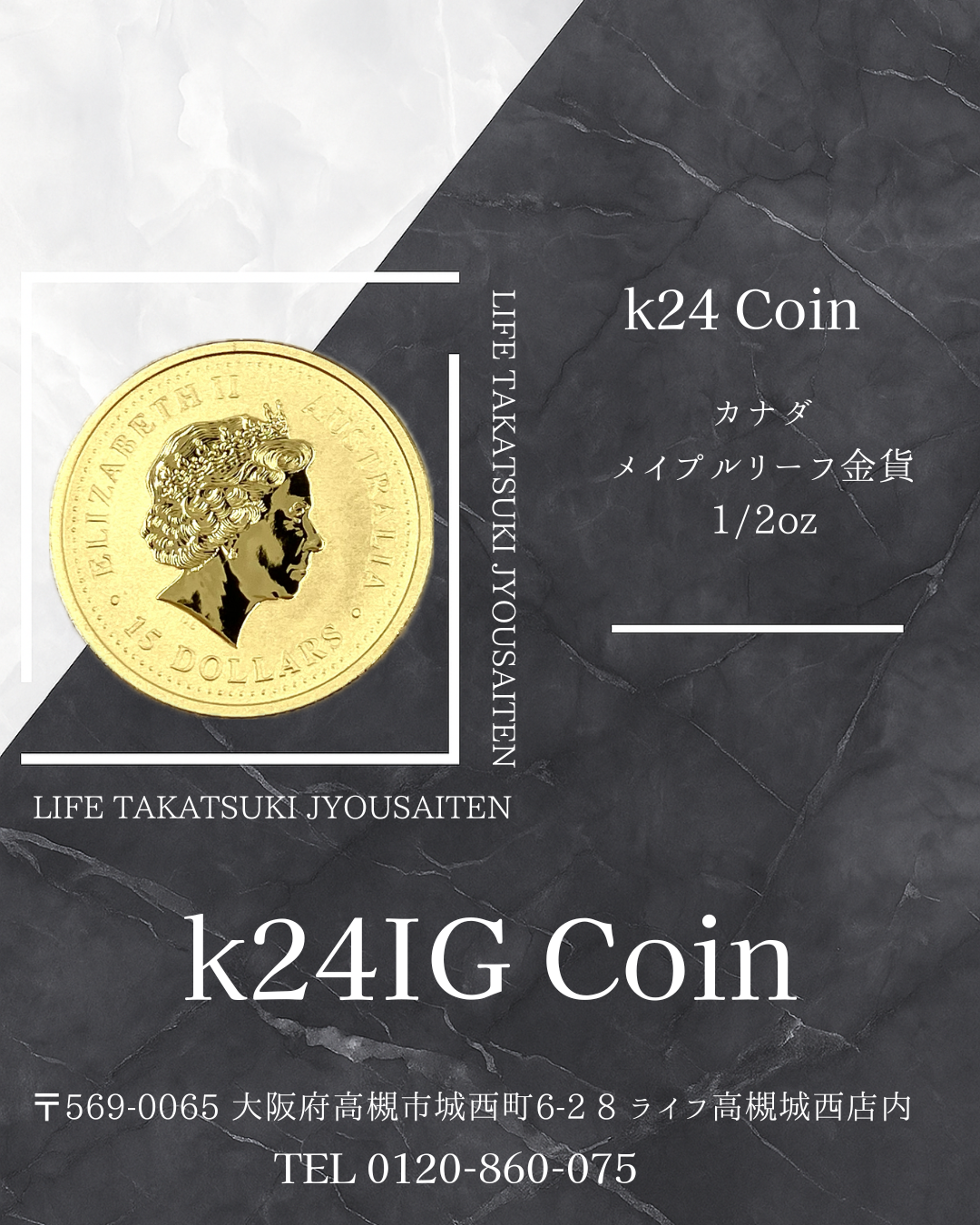 買取実績【K24 Coin カナダ メイプルリーフ金貨1/2oz】 | ライフ高槻城西店