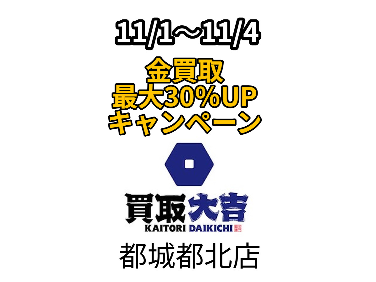 買取大吉» 店舗紹介» 都城都北店» 都城都北店 店長ブログ» 🔥✨【11/1(金)〜11/4(月)限定‼️】✨🔥 💰💛金買取 最大30%UPキャンペーン💛💰