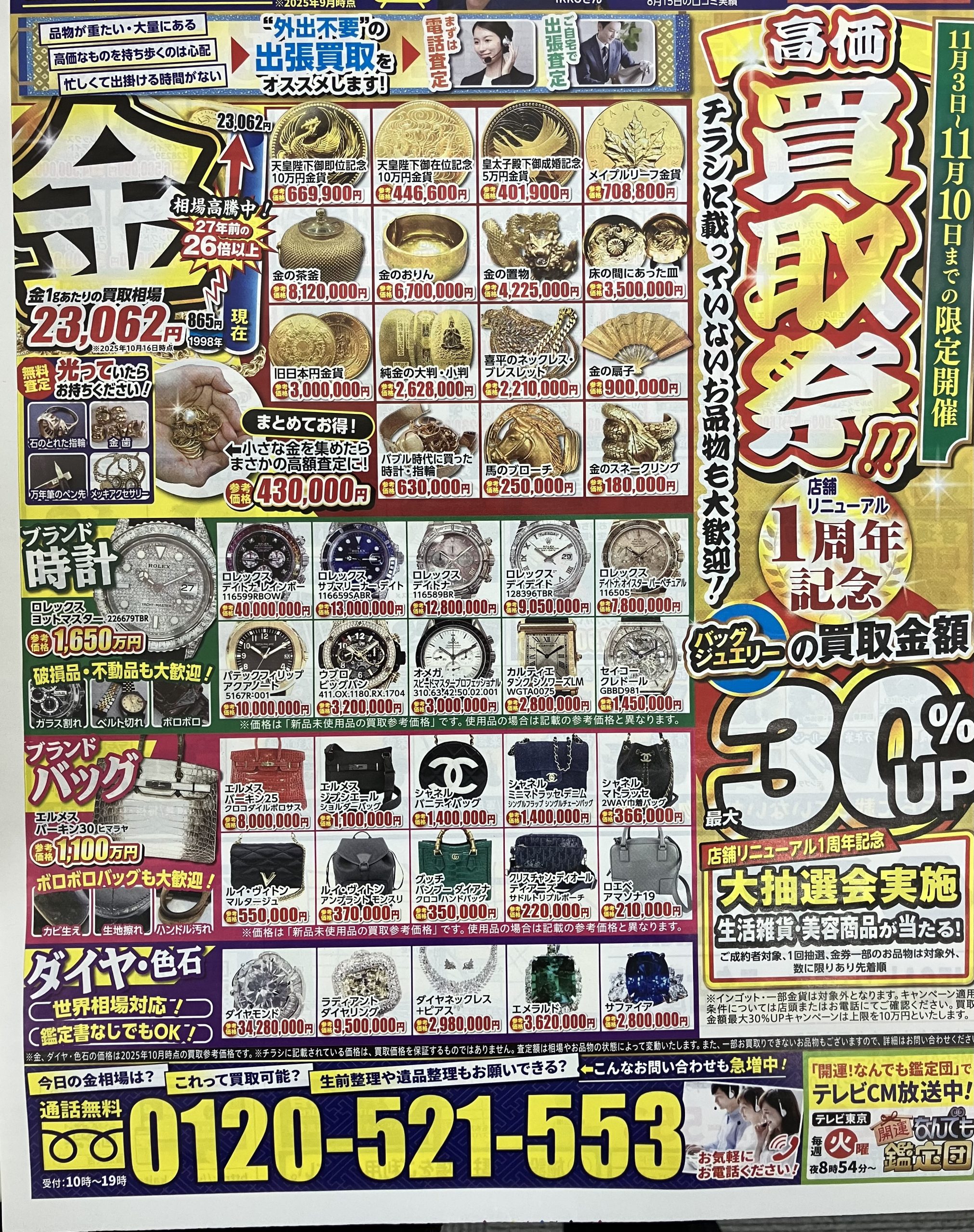 おかげさまでリニューアルオープン1周年となりました。感謝申し上げます。1周年記念として買取祭を行います。