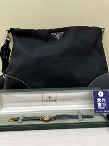 昨日はベルトが切れてしまったプラダのバッグとアンティークのGUCCIの腕時計をお買い取りさせて頂きました。