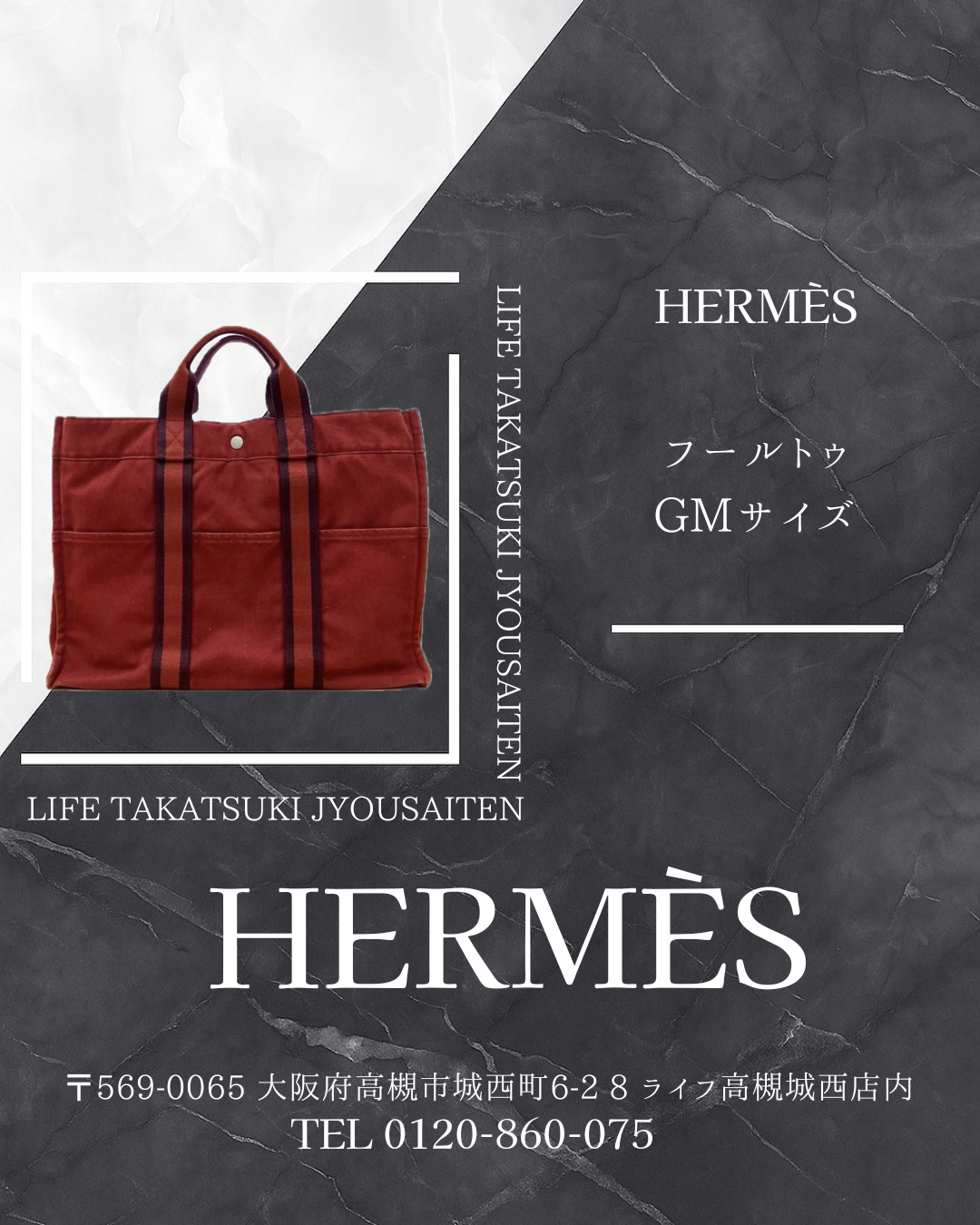 買取実績【エルメス フールトゥ GM キャンバストートバッグ】 | ライフ高槻城西店