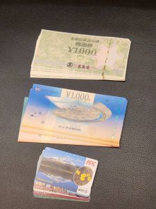 全国百貨店共通商品券、UCギフトカード、テレホンカード、ビール券をお買い取りいたしました。