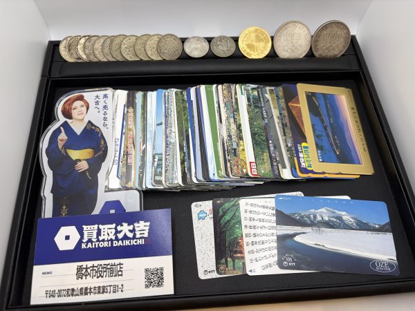 買取実績【御在位六十年金貨、東京オリンピック記念1000円硬貨、100円銀貨、テレカ110枚】 | 橋本市役所前店