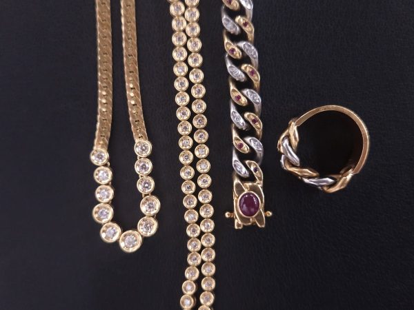 アクセサリー同様に装身具ですが、金やプラチナなど希少性が高く比較的高価な貴金属や、ダイヤモンドやエメラルドなどの宝石を組み合わせたりして加工するアクセサリーです。