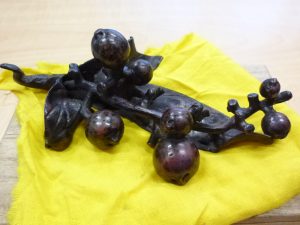 お持ち頂いたのは、枇杷の枝葉の筆架(ひっか)です。