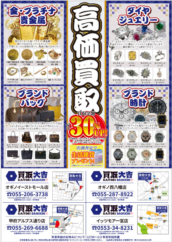 『買取大吉 オギノイーストモール店』限定、高価買取を実施しております✨