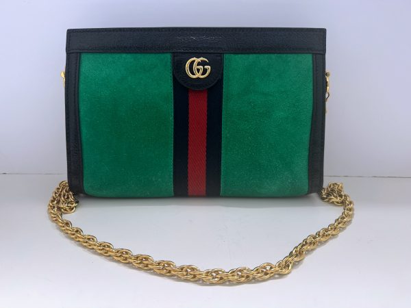 こちらグッチのレザー×スエードのオフディアチェーンショルダーバッグをお持ち頂きました☆