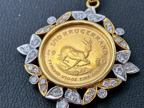 このコイントップは南アフリカ共和国造幣局発行の地金型金貨のクルーガーランド金貨です。