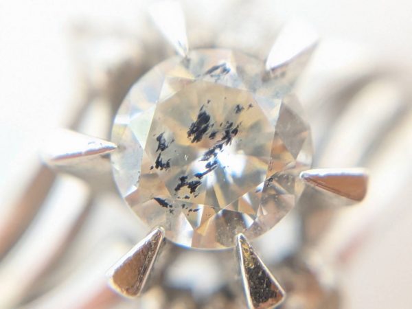 今回のダイヤは0.28ctと少し小ぶりで、画像のように、肉眼でもわかるくらい黒点が大きくあったので、ダイヤの評価としては落ちてしまうのですが、それでもプラチナの価格に数千円をアップしてご提示できました⭐️