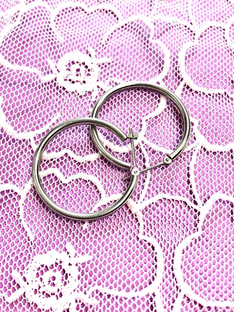 細めでシンプルなデザインのフープピアス、ファッションを選ばず楽しめるのも魅力💕