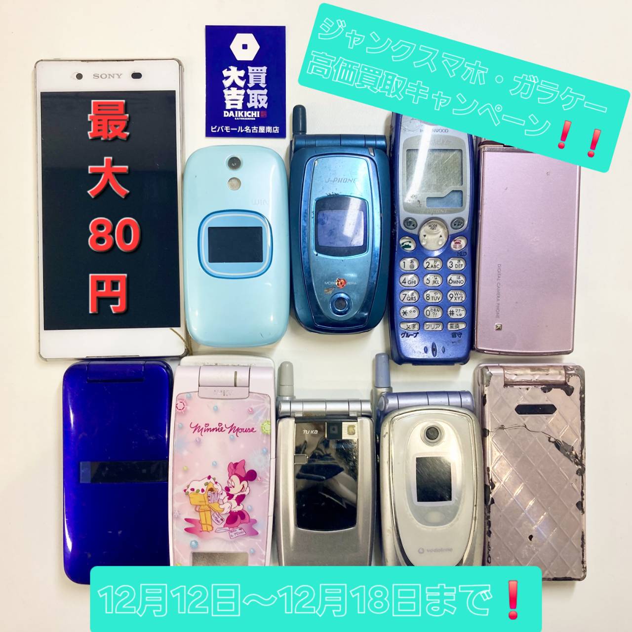 当店では、本日から12月12日~12月18日までジャンクスマホ・ガラケーの買取強化しております🌟🌟