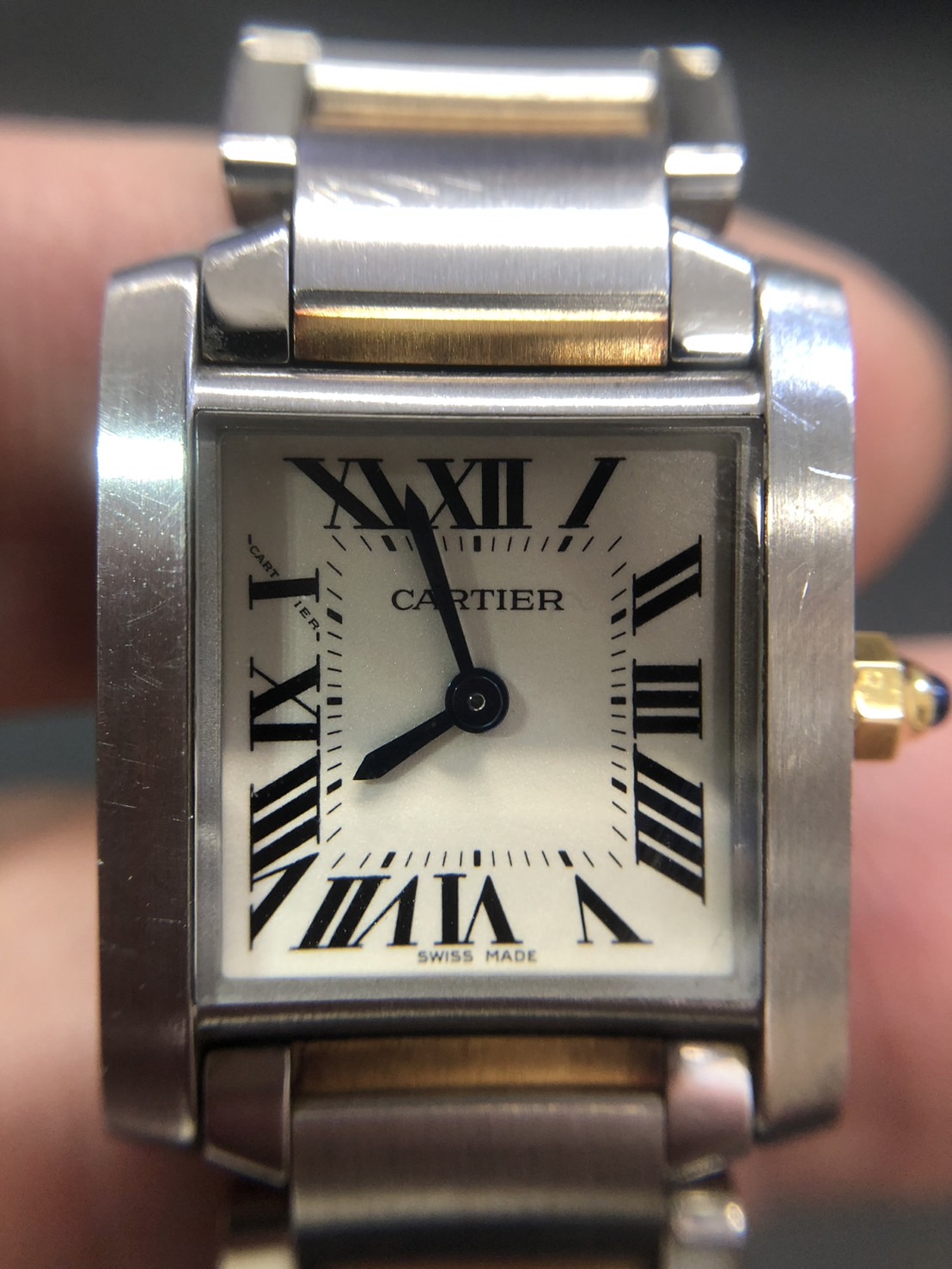 カルティエ(Cartier) タンクフランセーズ MMコンビ 時計 のお持ち込みとなります。当店では、高級ブランド時計類は、他店対抗の高額レートでお買取りさせていただいております。西武新宿線沿線の方々が遠方より数多くご来店いただいておりますので、1点からでもご対応させていただいておりますので、ぜひ高級ブランド時計類は当店までお持ち込みください。このお品物も他店より高額の査定にて、お客様お喜びの高価買取となりました。