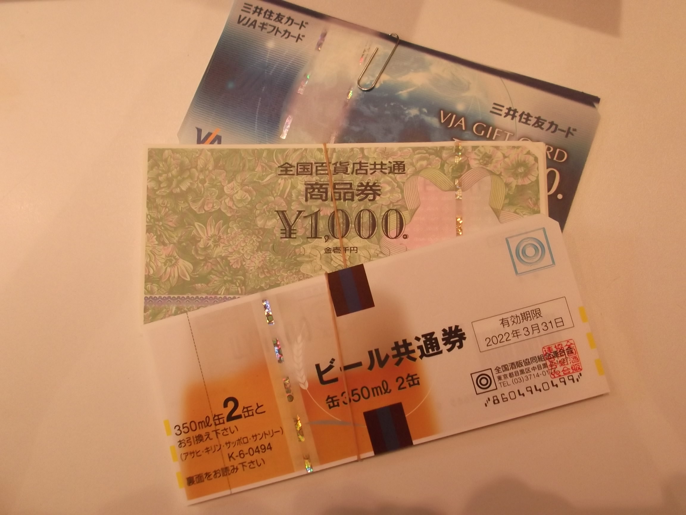 信託系、ビール券、クオカード、株主優待券など