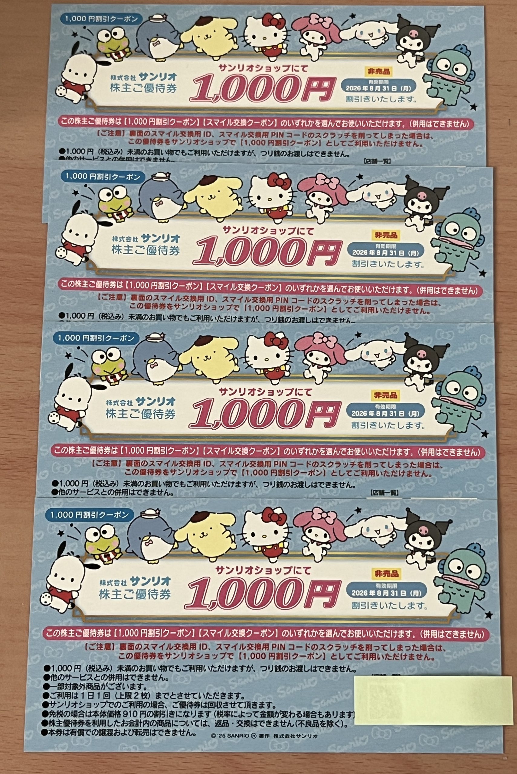 サンリオ/株主優待券/1000円スマイルギフト券/金券をお持ち込みいただきました。