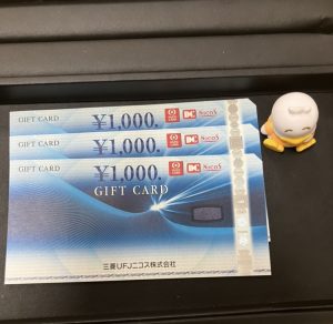 本日コチラの三菱UFJニコスギフトカード1000円をお買取りさせていただきました。