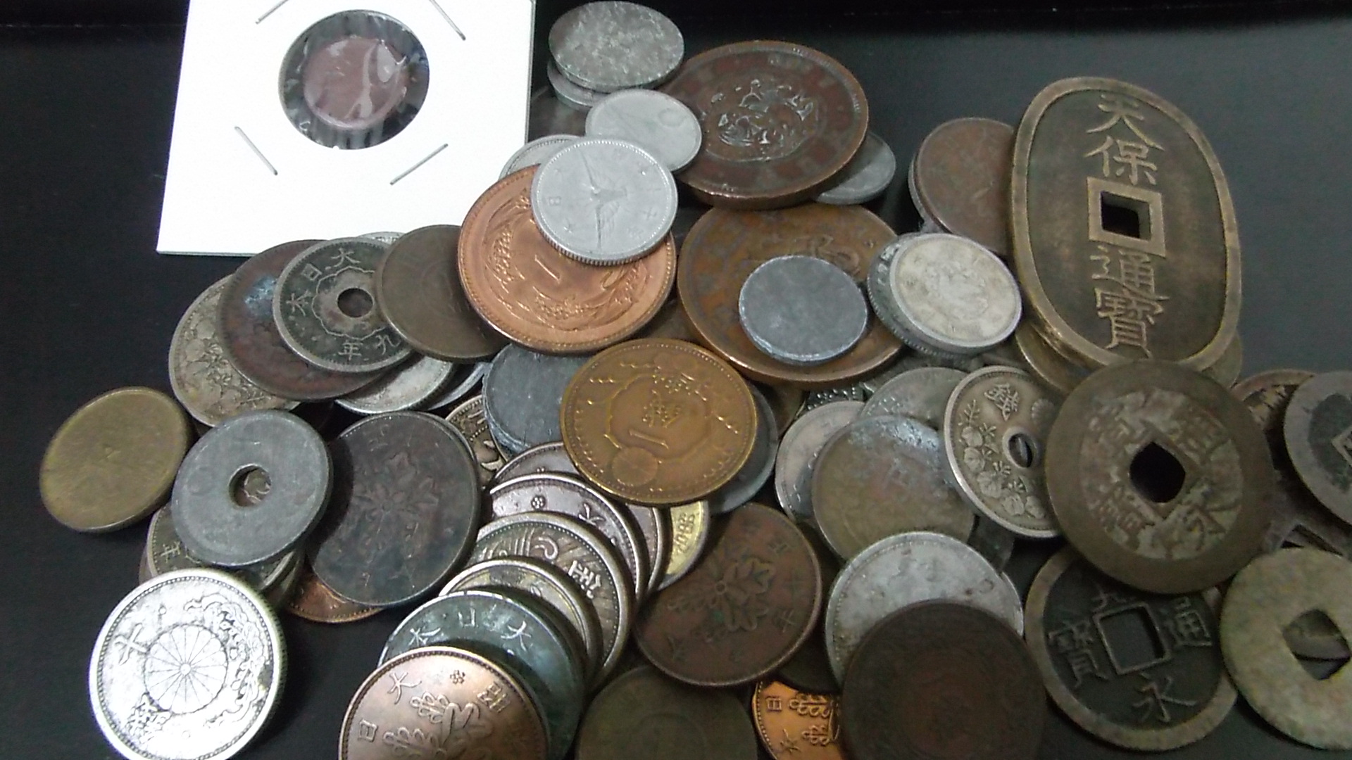 お客様がお持ちの古銭、穴銭、絵銭等、一枚一枚シッカリとご説明させて頂きます。