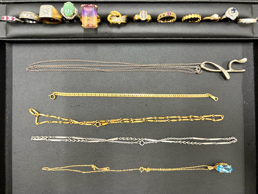 金の高騰に伴い、当店にはたくさんのアクセサリーのお持ち込みが増えております!