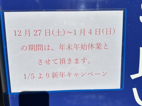 年末年始の休業のお知らせ 12/27(土)~1/4(日) となります。 | 上石神井駅前店