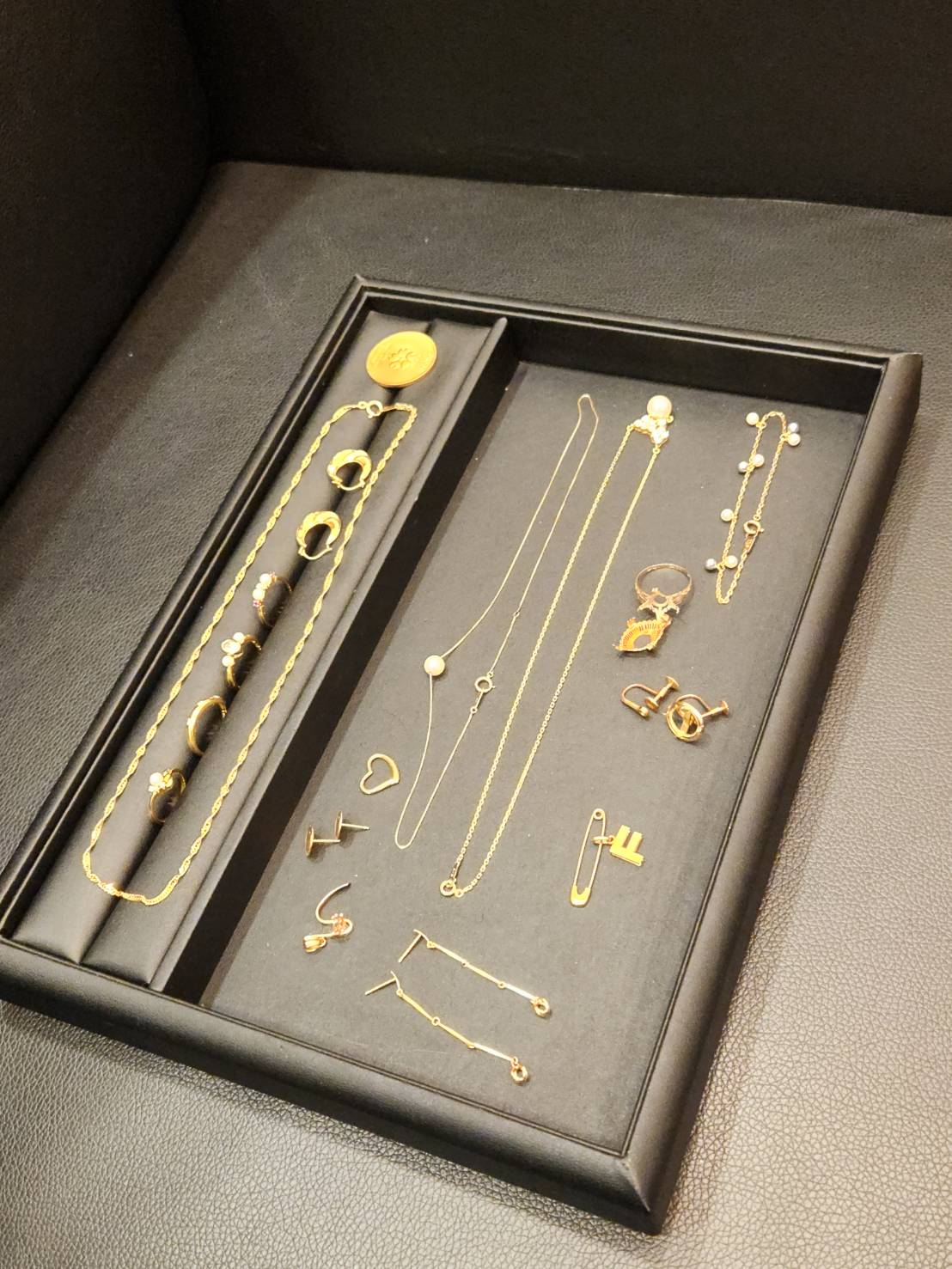 純金カレンダー、記念メダル、イヤリング、ピアス、指輪、ネックレス、ペンダントヘッドをお買い取りいたしました。
