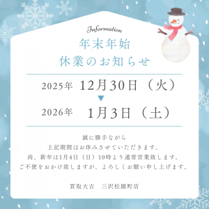 〚年末年始休業のお知らせ〛 | 三沢松園町店