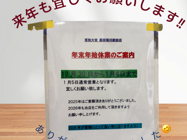 年末年始休業のお知らせ!!本年もご愛顧頂きありがとうございました!!! | 墨田菊川駅前店