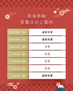 2026年は1/4(日)から営業いたします。画像もご確認の上