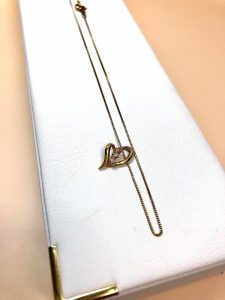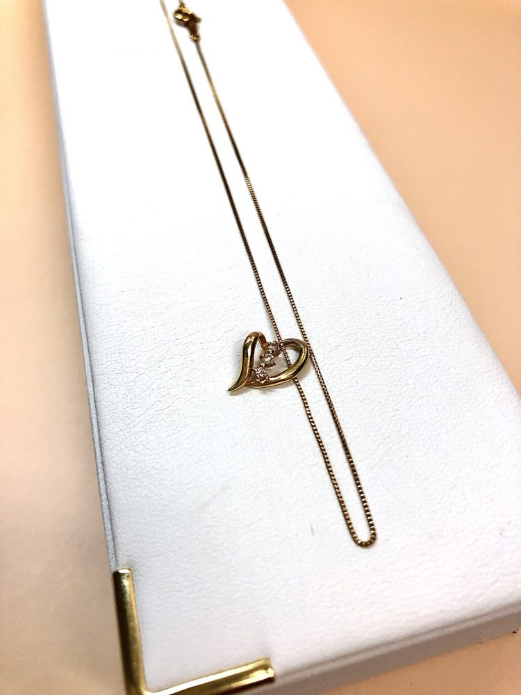 ハート型のチャームにダイヤモンドが並んだこちらのネックレス。