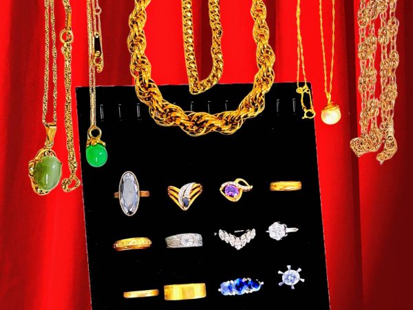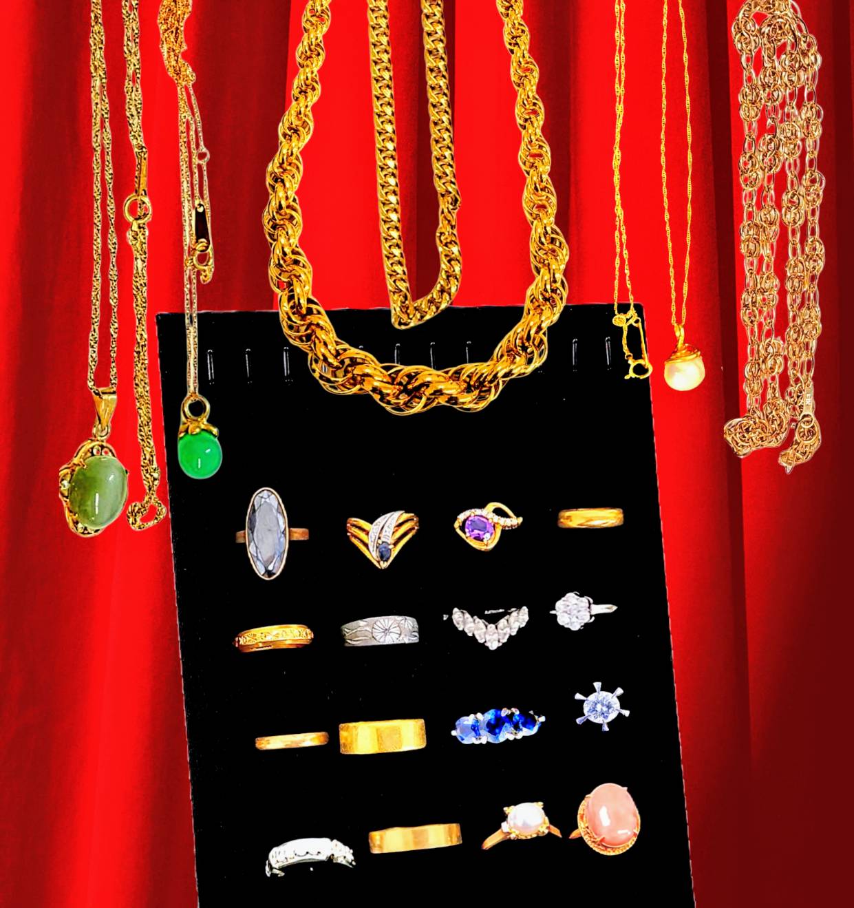 ゴールドのネックレスや指輪を中心に、色石