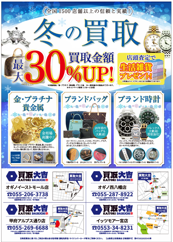 買取大吉» 店舗紹介» オギノイーストモール店» オギノイーストモール店 店長ブログ» 冬の買取祭!開催!!