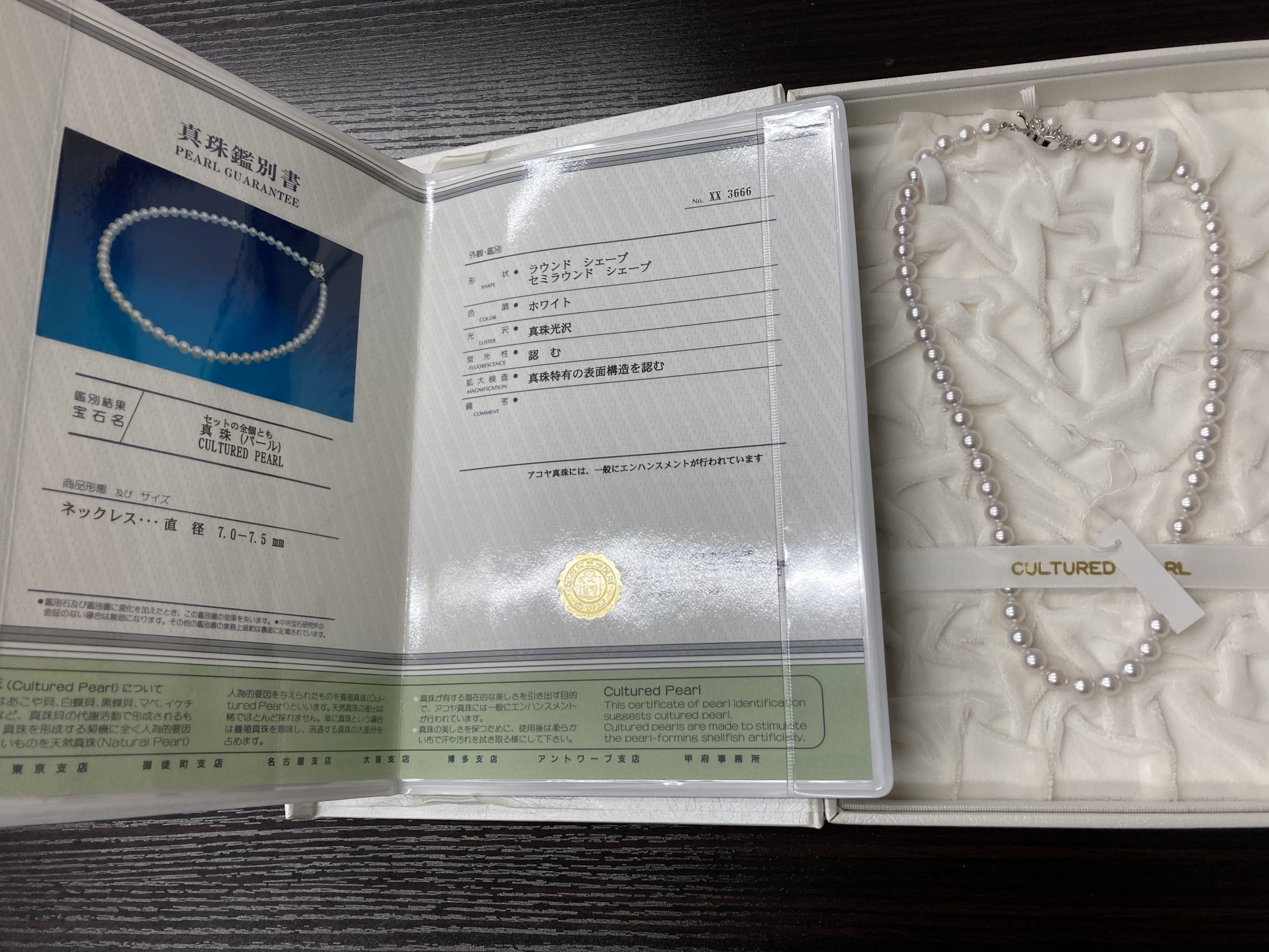大切に保管されていた事が分かる、とても状態の良いパールで、鑑別書も一緒にお持ち込みくださいました。