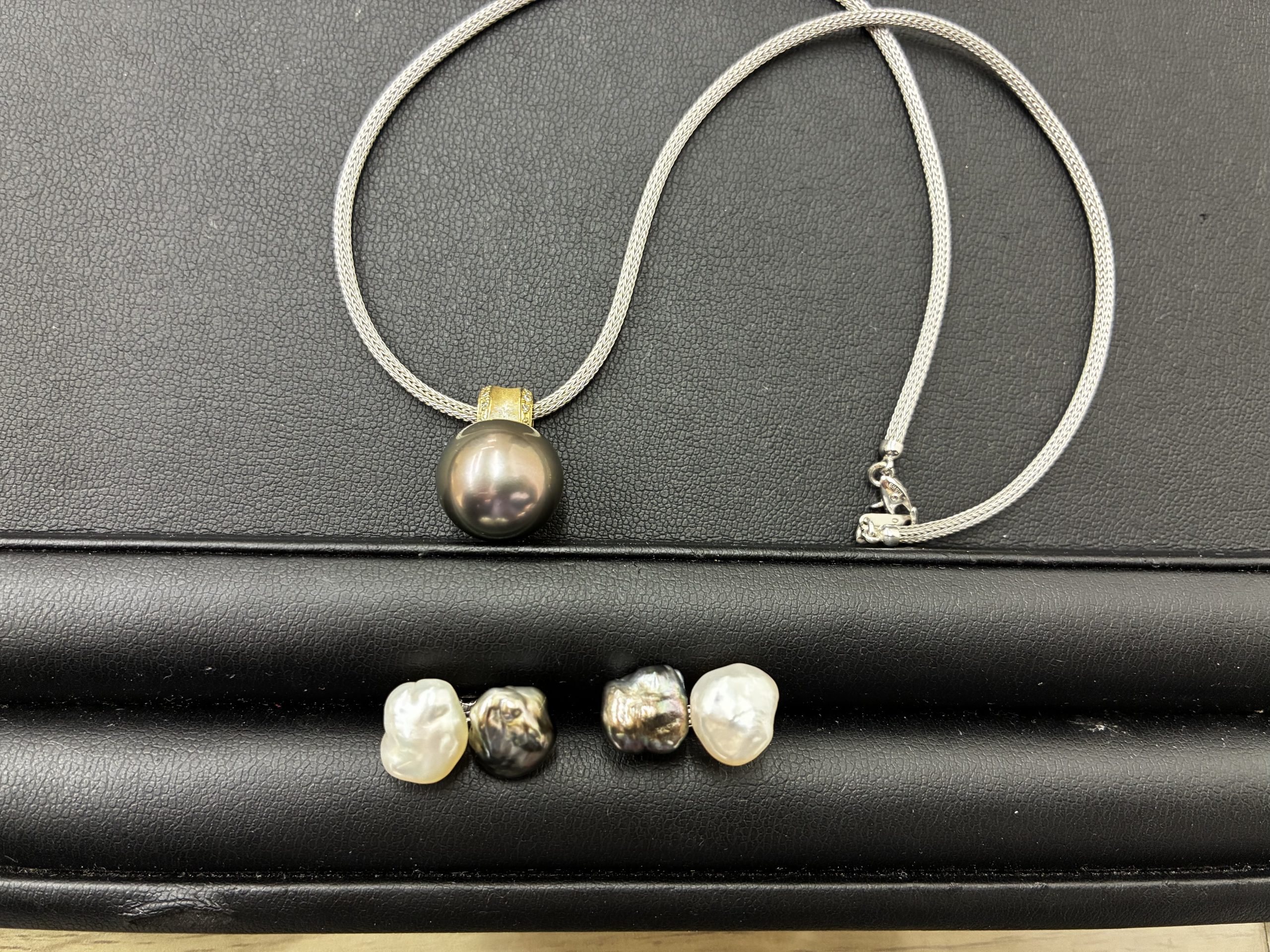15.02mm黒蝶真珠K18ネックレスの二品をお持ち頂きました。