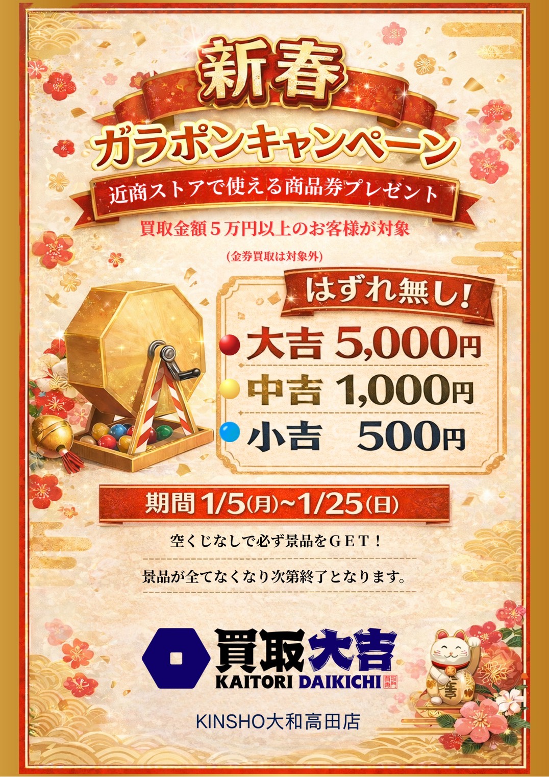 ハズレ無し!新春ガラポンキャンペーン | KINSHO大和高田店