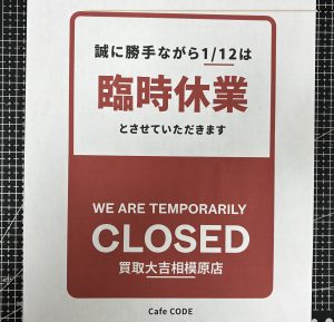 1月13日火曜日からは通常営業です。