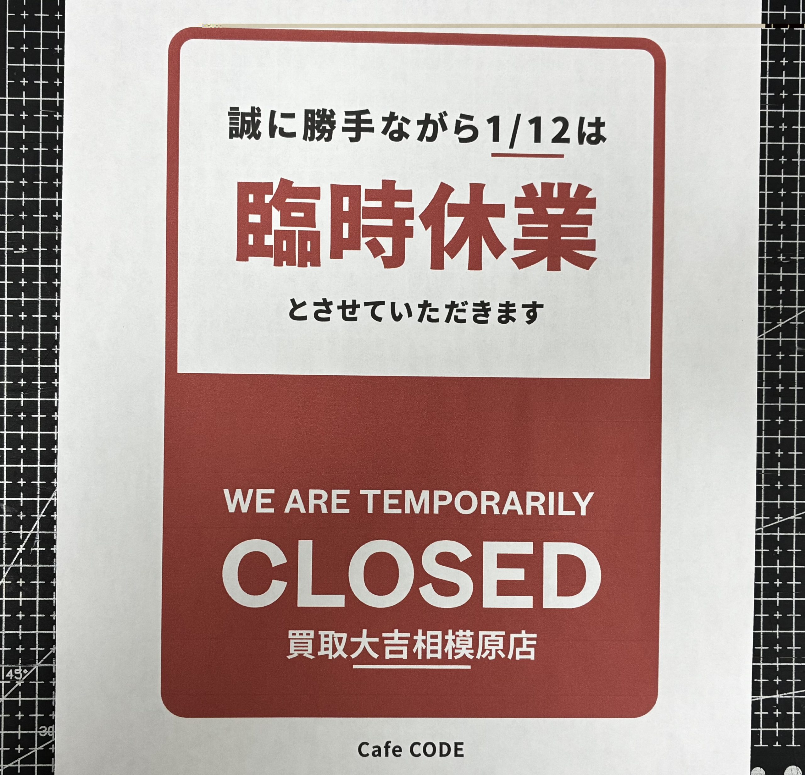 誠に勝手ながら、1額12日(月曜日)は